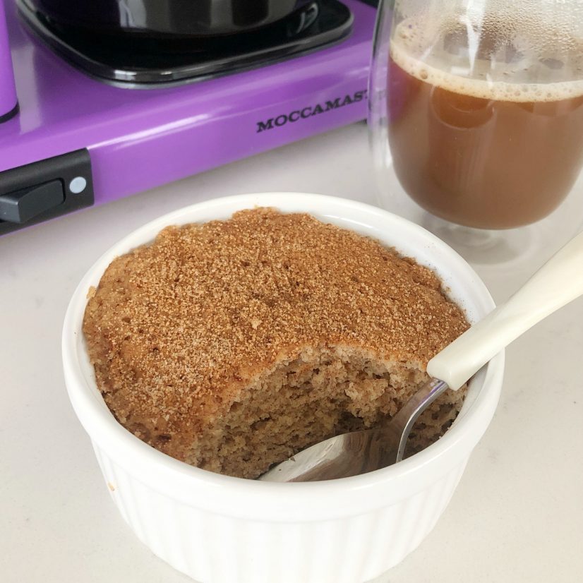 - Remove from microwave and sprinkle top with a bit more cinnamon and sweetener.